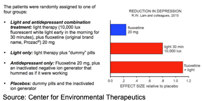 The results were a game changer: Light therapy, and the combination of light therapy and an antidepressant, were superior to the antidepressant alone by a large margin.